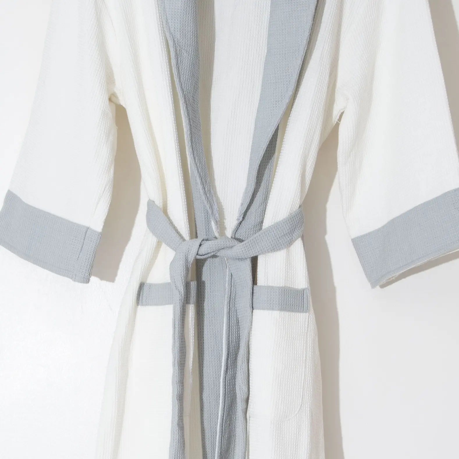 It’s a fine, grid-like weave that gives the robe a light, breathable texture, softer than classic waffle and incredibly gentle on the skin.