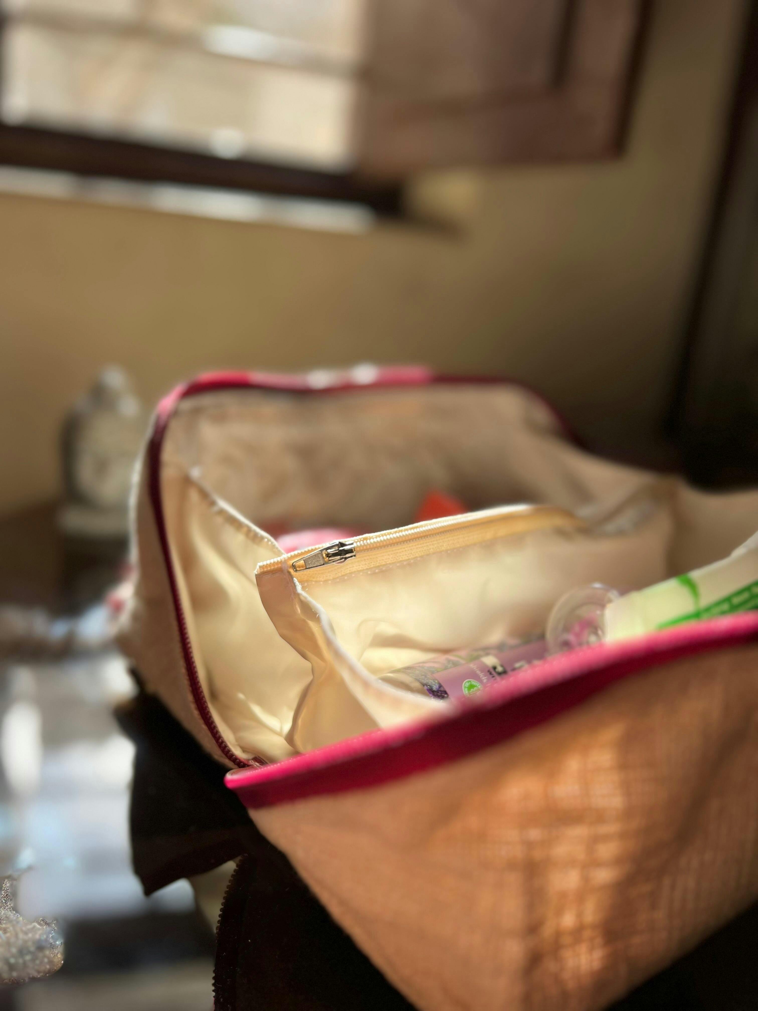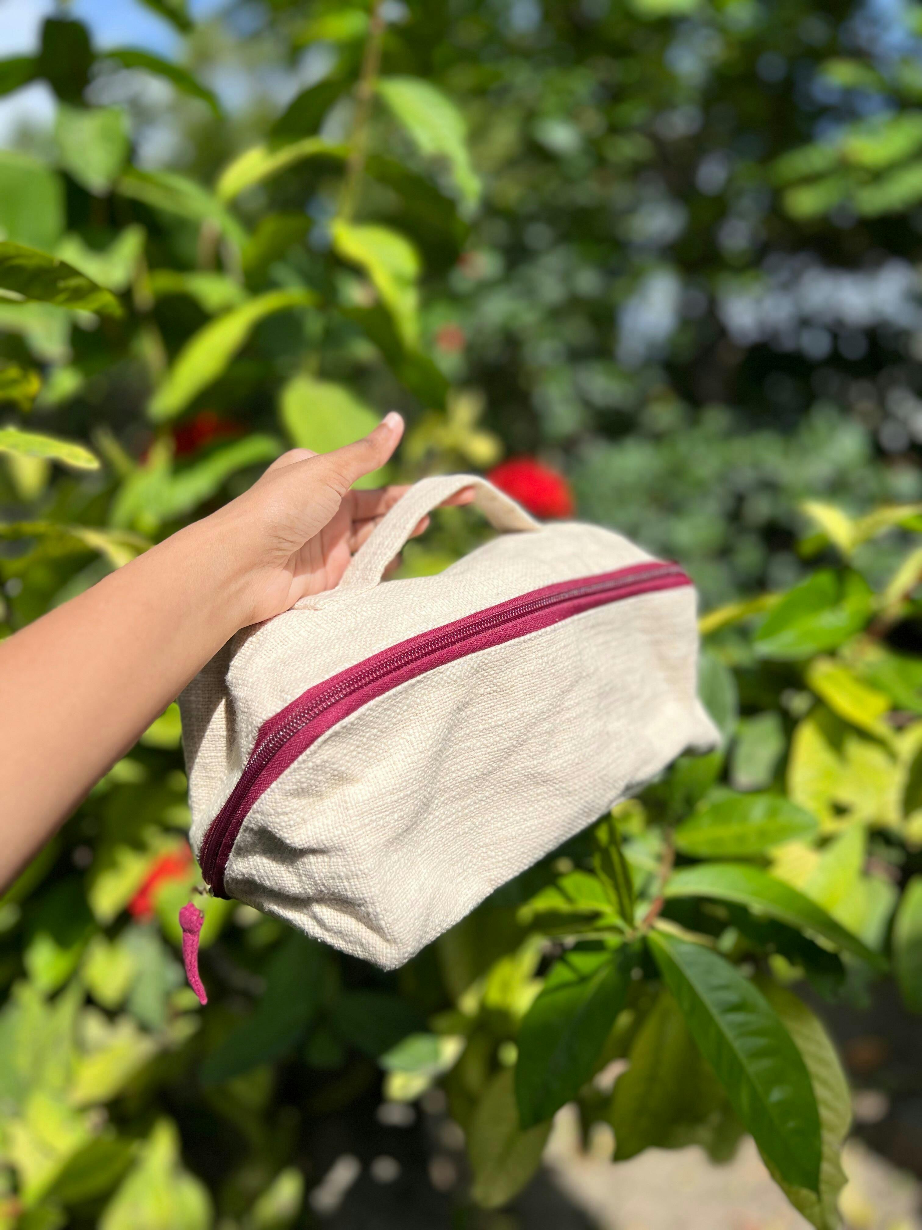 Meet your new favorite travel companion our flat lay pouch, the ideal makeup and toiletry organizer crafted from sustainable cotton slub fabric. With thoughtfully designed internal compartments and a smooth zip closure, it keeps your brushes, skincare, and beauty essentials neatly in place.