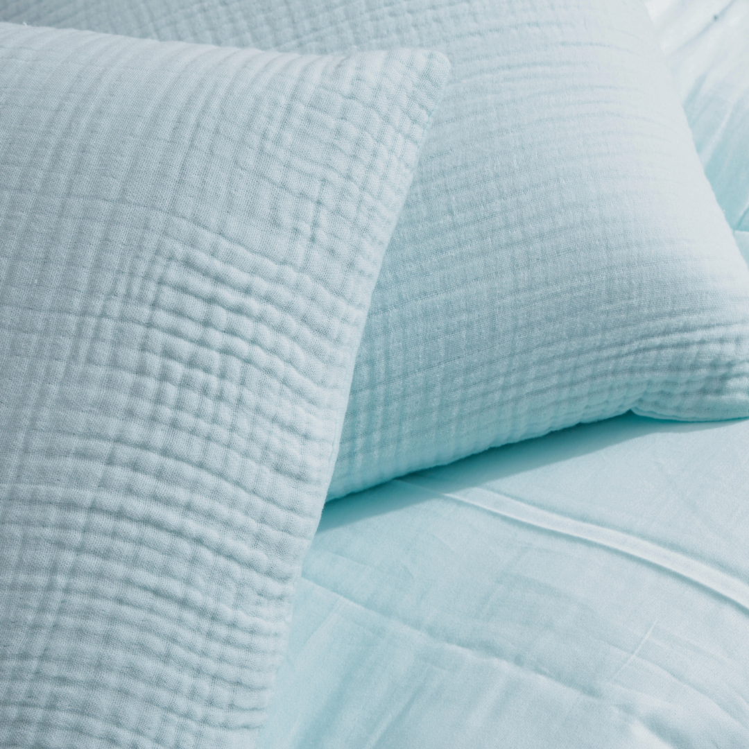 Soft, breathable, and beautifully textured, this lightweight muslin bedding set brings effortless comfort and a relaxed look to your everyday sleep routine.